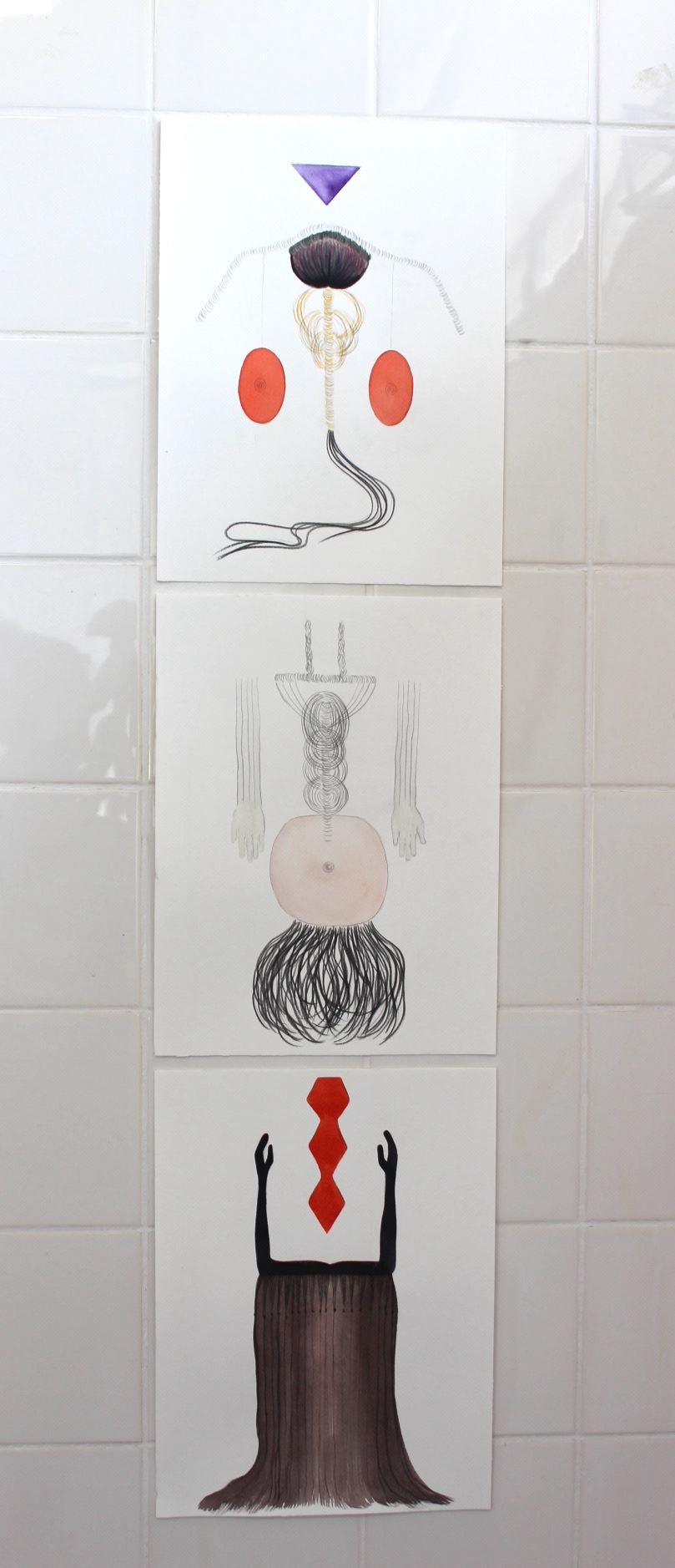 (3x) 32 × 24 cm, shellac ink, (coloured) pencil, and watercolour on paper